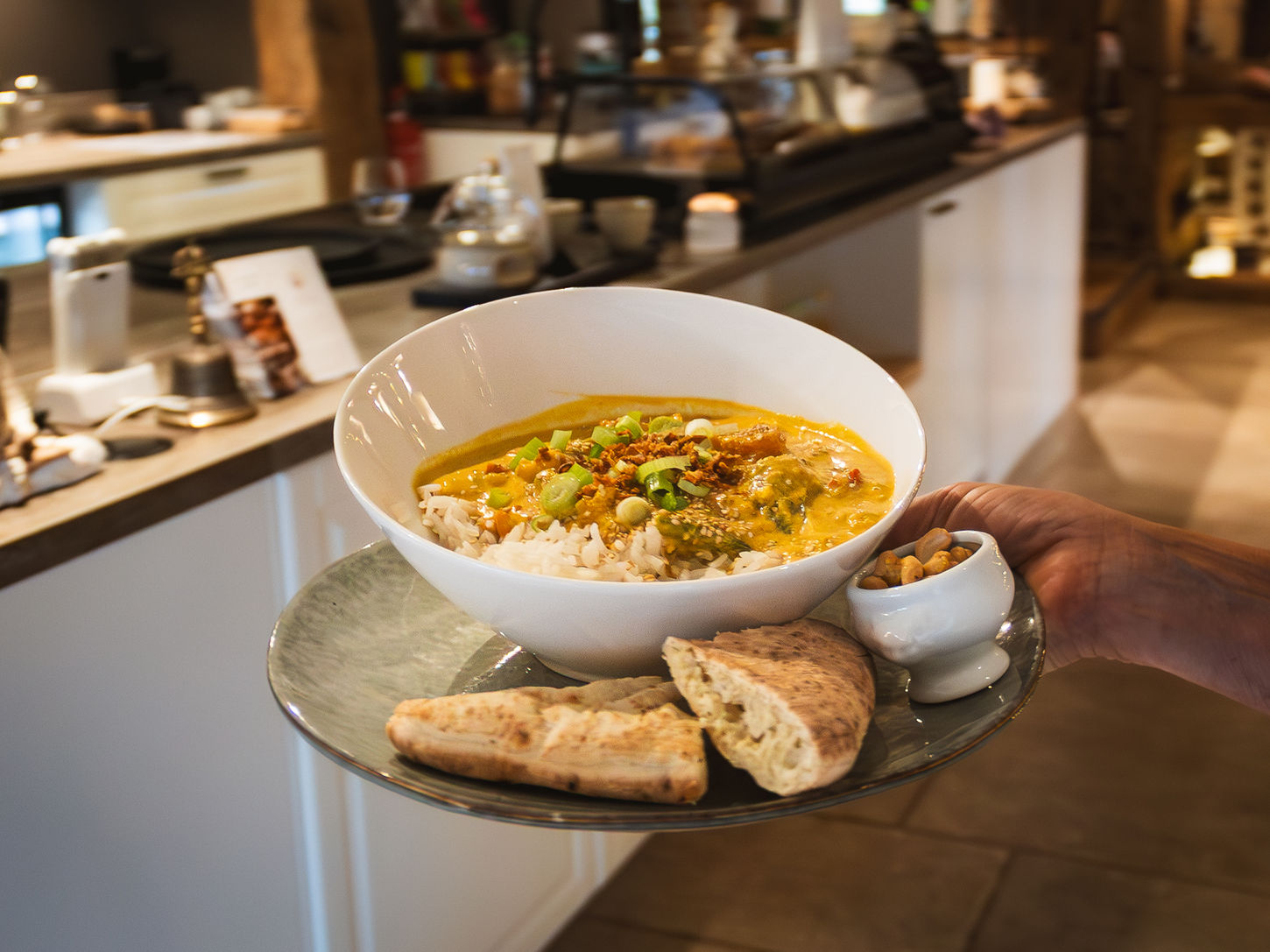 Je kunt hier terecht voor een gezonde, vegetarische lunch of gewoon iets lekkers tussendoor. Of je nu wilt wandelen vanuit de molen, even wilt uitrusten na een yogales, een behandeling hebt gehad, of een bezoek brengt aan onze winkel: alles nodigt uit om te vertragen, op te laden en echt te zijn.